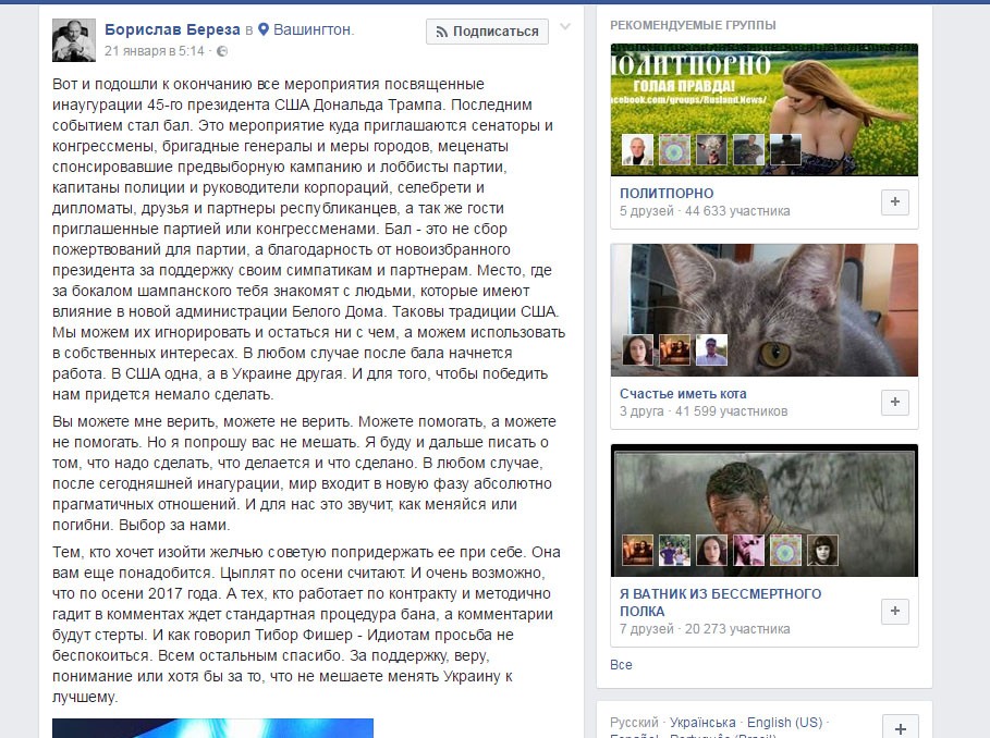 Украинские политики хвастаются в соцсетях поездкой на инаугурацию Трампа