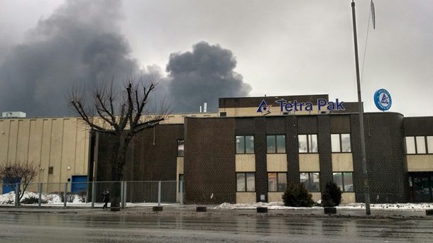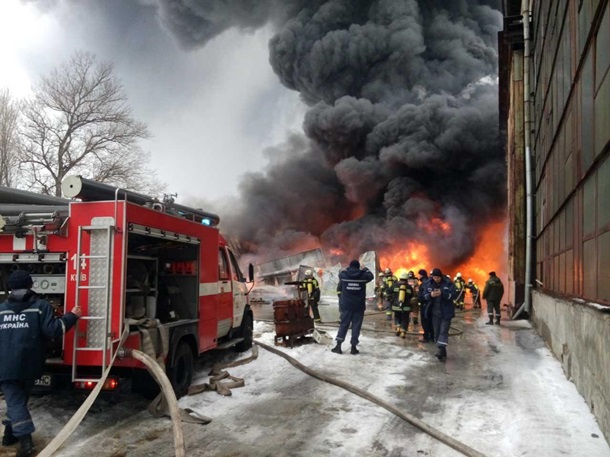 В управлении ГСЧС Киева заявили, что пожар произошел в отдельно стоящем складском помещении для хранения горюче-смазочных материалов.