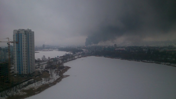 Также киевляне выкладывают фото и видео столба дыма с разных точек.