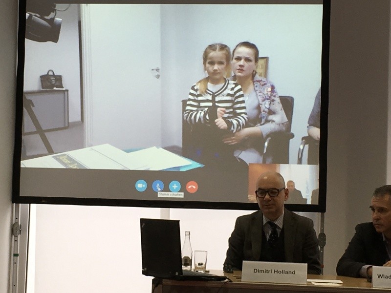 Немецкие журналисты и гости пресс-конференции получили "Мониторинг некоторых аспектов нарушения прав человека в Украине за 2014-2016 год", в котором были представлены истории реальных людей, которые пострадали за свои убеждения или стали жертвами вооруженных действий в Донбассе. Некоторые из них вышли на связь по скайпу из Москвы.