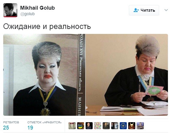 Впрочем, пользователи обнаружили и другие фотографии Бандуры – оказалось, что на судебных заседаниях «боевую раскраску» она не использует.