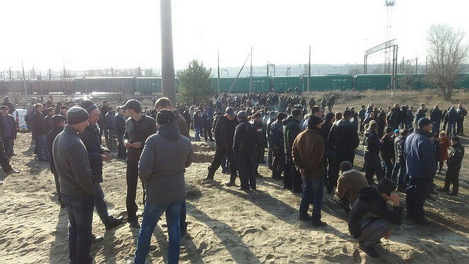 Жители Харьковской области прогнали ветеранов т.н. АТО, намеревавшихся вслед за блокадой Донбасса прекратить движение поездов по железной дороге в Россию возле города Купянск.