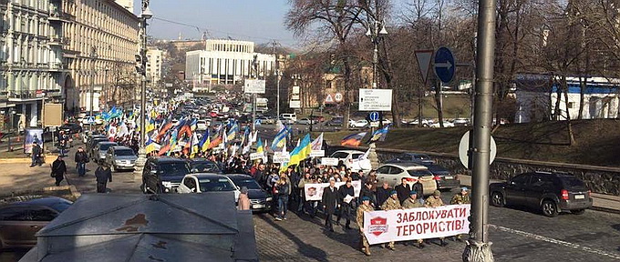 В центре Киева сегодня была собрана очередная массовка под лозунгами необходимости блокады ЛДНР и борьбы с обогащением олигархов.
