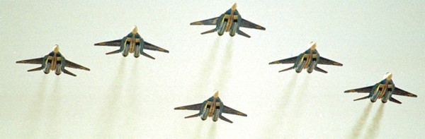 24 августа 1997 г. над аэродромом киевского аэроклуба «Чайка» состоялся первый воздушный парад, посвященный Дню независимости. Впервые перед зрителями выступила пилотажная группа ВВС «Украинские соколы» в составе шести истребителей МиГ-29, которые пилотировали летчики-испытатели. Группа покорила сердца миллионов зрителей во время выступлений в Великобритании, Чехии, Словакии, Румынии, Турции, и была удостоена многих наград.