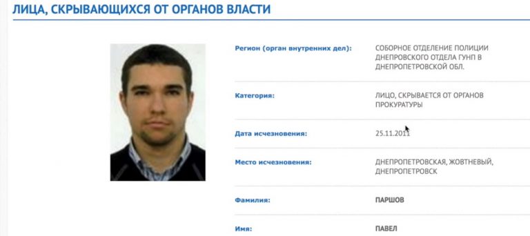 Ранее появились данные о том, что сведения о Паршове содержатся в официальном реестре лиц, скрывающихся от органов власти, на сайте МВД Украины. Согласно информации ведомства, он исчез 25 ноября 2011 года в Днепропетровске и является «лицом, скрывающимся от органов прокуратуры». Мужчина находился в розыске за совершение преступлений, предусмотренных статьями 205 и 209 УК Украины (фиктивное предпринимательство и легализация доходов, полученных преступным путем).