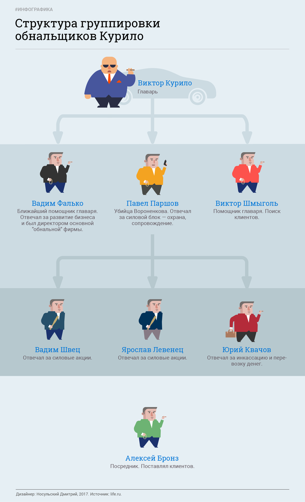 — Предположительно, они либо не поделили рынок, либо Вороненков обманул Курило, — сообщил Лайфу источник. — А Курило — это мужик, с которым нужно было считаться в любом случае, прежде чем лезть в обнальный бизнес.