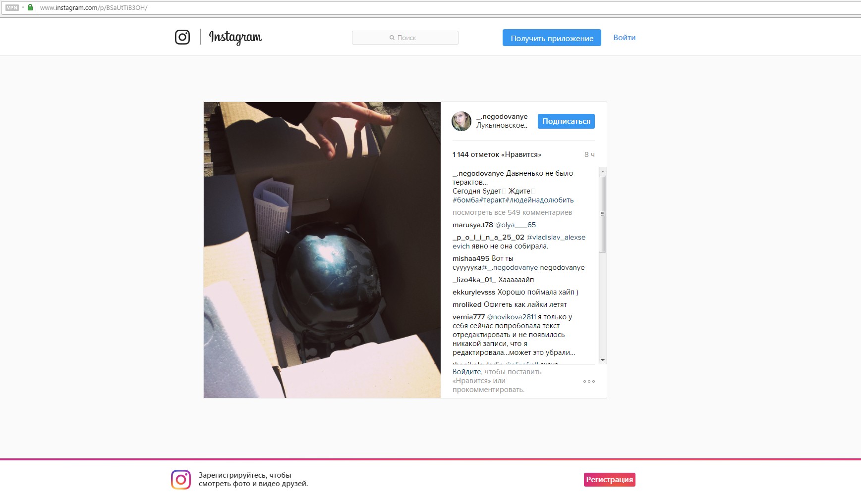 По неподтверждённой информации о теракте предупредила жительница Киева Катя Рубанова . Об этом она написала на своей странице в instagram , которая на данный момент удалена. Самое интересное, что гугловский кеш тоже подчищен - там ничего нет. У нас остался лишь скришот этой страницы: