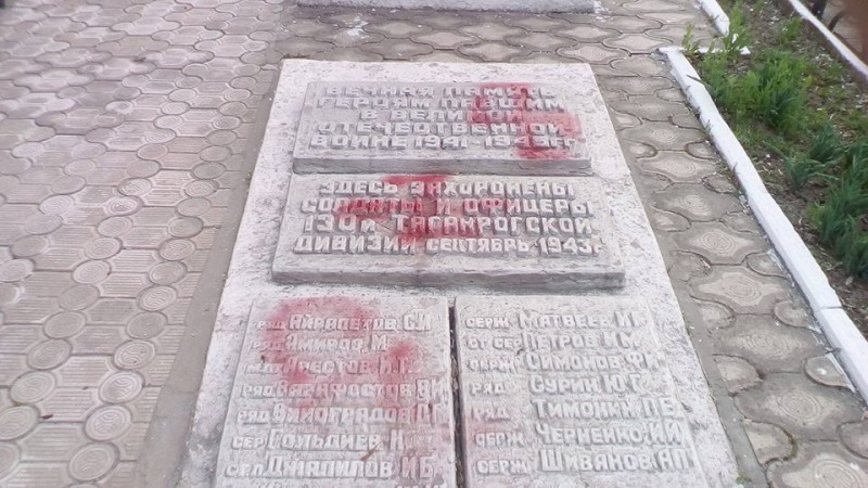 В Мариуполе не-нацисты осквернили памятник на могиле погибшим красноармейцам