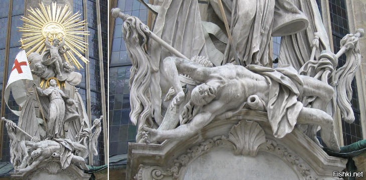 Хозяева предателей увековечили своё превосходство над одичавшими, усато-чубатыми русскими, отказавшимся от своего народа и продавшихся чужакам в скульптуре, памятниках и даже в барельефах жилых домов.
