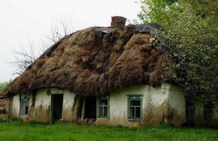 Твой дом, когда председатель-барыга отправил главу семьи в АТО, его жену — в Польшу на заработки, забор разобрал на дрова, садок вышневый спилил и продал в соседнее село, и даже двери, сука, вынес. Потому что его личному танку требуется дополнительная броня. А тут ещё злой Путин наслал ураган и проливной дождь. И крыша из соломы и глиняные стены …