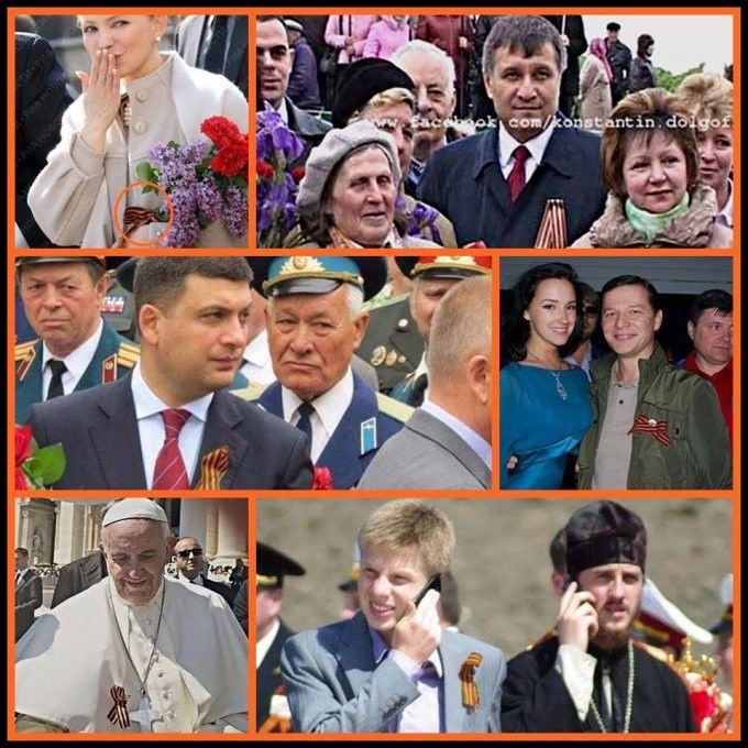 Она также опубликовала коллаж, где запечатлены находящиеся сегодня при власти украинские политики, ранее носившие Георгиевские ленточки.