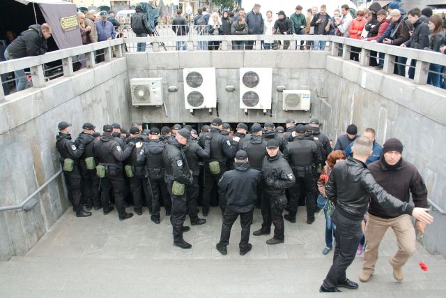 Второй вывод: успех же власти был в том, что ей удалось обеспечить проведение пусть и ненавистного ей неофициального празднования без массовых эксцессов и нарушений правопорядка, без кровопролития, к которому готов был, например, батальон «ОУН», собиравшийся встретить «Бессмертный полк» своим «Смертным полком». Нациков просто заблокировали в их штаб-квартире на улице Мазепы, и они орали свои песни, размахивали флагами, плевались и бросались в правоохранителей яйцами, мусором и всякой всячиной из окон. Отличный зверинец получился, скажу вам, отличный.