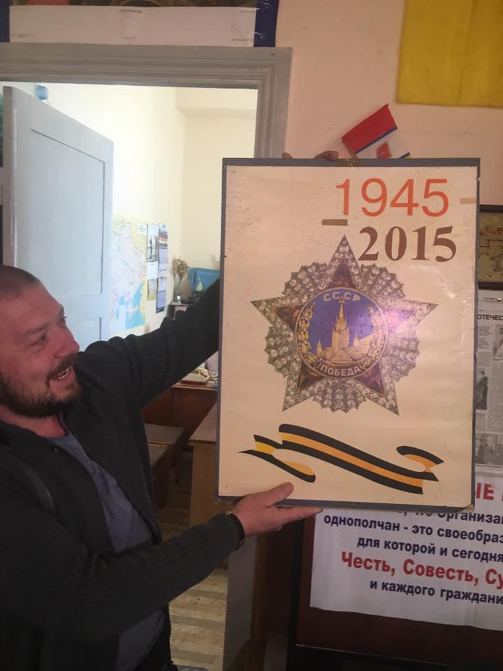 Националисты вместе с полицией обнаружили у ветеранов копию Знамени Победы, рамку, обрамленную Георгиевской лентой, и другие грамоты и документы с изображением серпа и молота, надписью «СССР» и т.д.