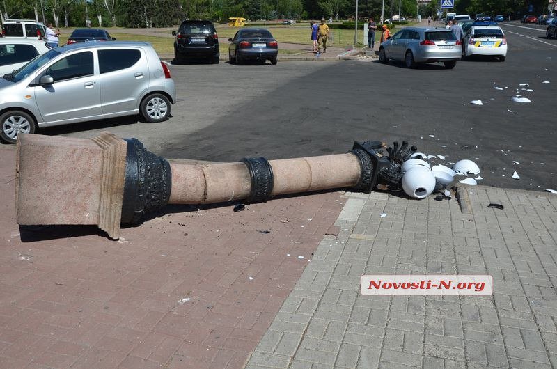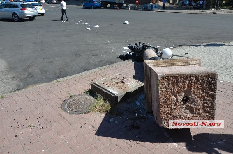 Днем в четверг, 8 июня, на ул. Адмиральской в Николаеве, женщина на автомобиле «Лексус» снесла гранитный фонарный столб возле Николаевского горисполкома.