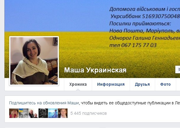 Среди городских пособников нацисткой власти названа Галина Однорог, сжигавшая георгиевские ленточки, сорванные с ветеранов на вечном огне. Имеет прочные связи с националистами «Азова» и молодежным подразделением «Свобода». На её совести травля учителей в соцсетях за лайки и посты в поддержку Донбасса. Женщина лично инспектирует обязательное посещение «уроков мужества» в школах и привлекает к их проведению бойцов «АТО». В Facebook ведёт фэйковую страницу Маша Украинская.