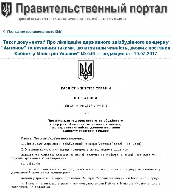 Цэ пэрэмога! Государственный авиастроительный концерн "Антонов" ликвидирован по решению правительства Украины.