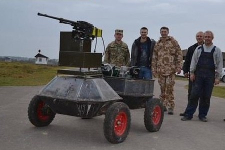 Возможно, кто-то из «специалистов» даже лично участвовал в создании шушпанцера, не секрет что ИГИЛовцев хватает сейчас на Украине с избытком, а предыдущие версии «боевых роботов» чисто украинской разработки выглядели вот так: