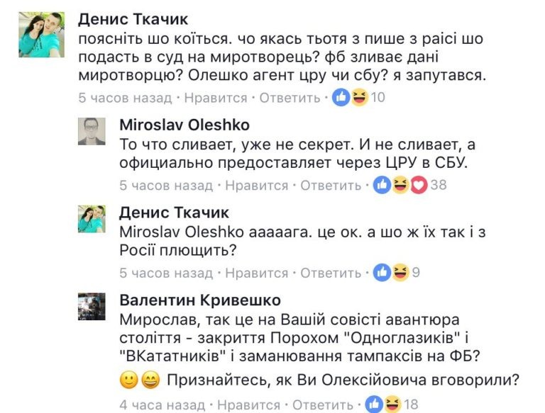 Теперь уже официально: Фейсбук совершает уголовное преступление, сливая данные своих пользователей украинскому сайту «Миротворец». Подробнее о начале истории здесь.