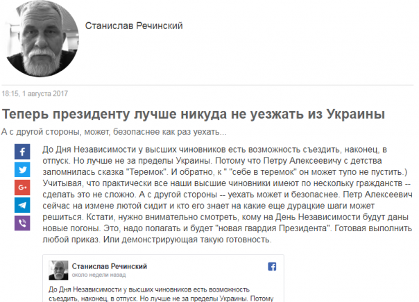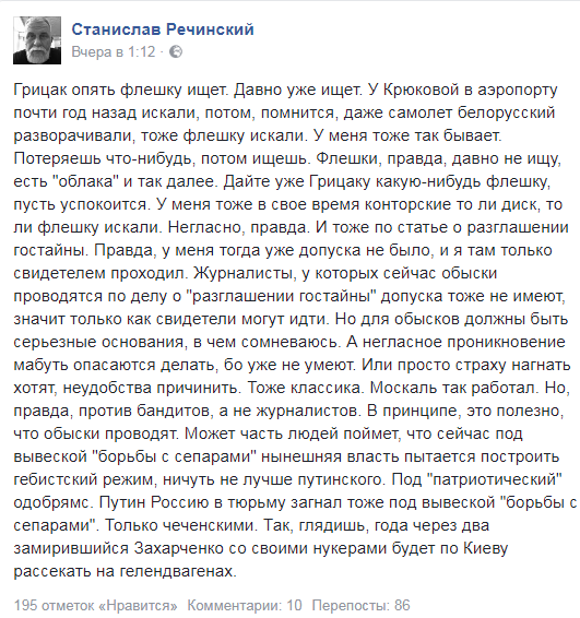Не правда ли, весьма похоже на прямую угрозу. Удивительно, почему Речинский до сих пор на свободе? Трогать бояться?