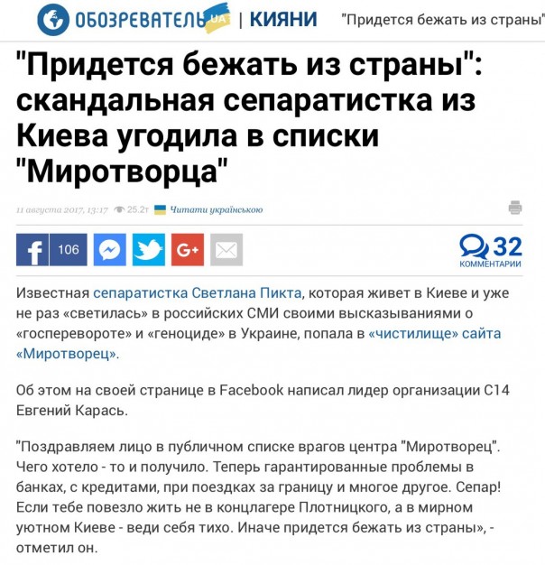 Кстати, я бы с удовольствием послушала комментарий о том, насколько данный факт является законным, правовым, демократичным и соответствует евростандартам от Порошенко, министра юстиции, генерального прокурора, омбудсмена и представителей международных правозащитных организаций. Очень хочется знать, как они оценивают этот конкретный случай. И что думают по поводу незаконного сбора и публикации персональных данных, а так же обвинений, сделанных на основе доносов.