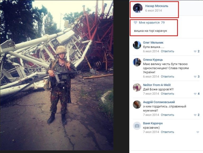 Так, на страницах в социальной сети военнослужащих этого подразделения — Александра Гнатюка и Назара Москаля, можно найти указание на то, что, во-первых, они действительно располагались на горе Карачун, а во-вторых, в распоряжении батальона имелись минометы — на одной из фотографий тех же военнослужащих можно увидеть артиллерийское орудие, находящееся на хорошо оборудованной позиции.
