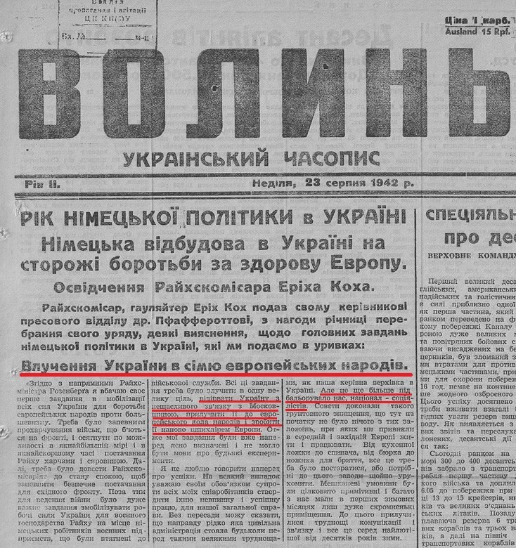 Кстати, именно тогда 23 августа 1942 гауляйтер Кох впервые объявил, что «Украина вошла в семью европейских народов».