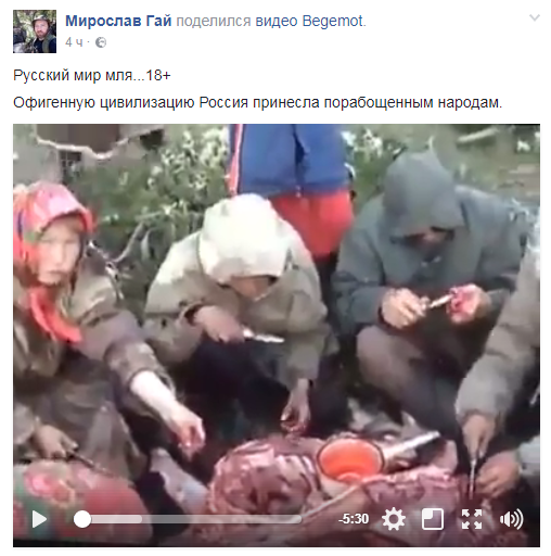 Тупость Мирослава беспредельна и давно стала притчей во языцех. Только посмотрите на имбецила. В это сложно поверить, но он на полном серьезе обвиняет Русский мир в том, что народы Крайнего Севера едят сырую оленину: