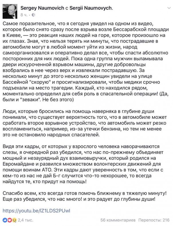 А задумывались ли вы, мрази, почему у вас теперь каждый день то граната, то машина взрывается?! А вопрос себе и СБУ о том, что делал этот боевик, на котором пробы негде ставить, в вашем Киеве — задали?!