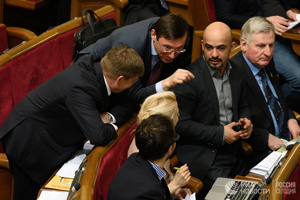 Председатель "Блока Петра Порошенко" Юрий Луценко и Мустафа Найем на заседании Верховной рады Украины