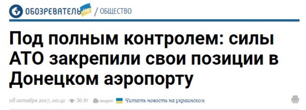 Один из укропатриотов сообщил:"Под нашим контролем взлетная полоса, руины ДАПа, то есть окраина города Донецк". Мне интересно в каком фантастическом сне ему это приснилось, я не знаю, но вероятно наркотик, который он принимал перед звонком журналистам, был очень крепким и его очень сильно штормило...или окраинские киборги после двухгодичной подзаряди аккумуляторов, наконец то выползли из руин и вновь заняли аэропорт...