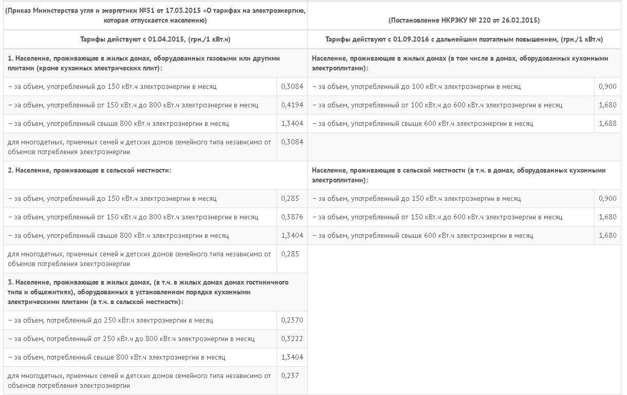 Сравнительная таблица тарифов на электроэнергию для населения в ДНР и Украине