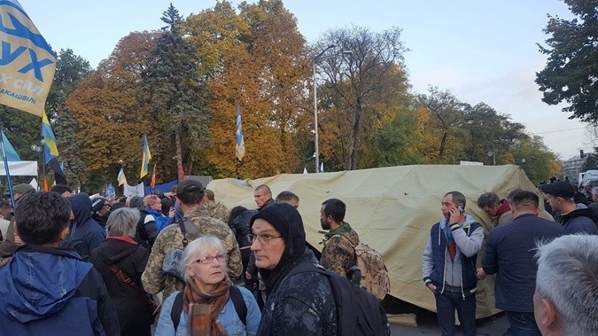 Вечером 17 октября митингующие у здания Верховной Рады разбили палатки. До этого они оттеснили охранявших мероприятие стражей порядка, отобрали у них ограждения и выставили их на перекрестке улиц Грушевского и Липской. Участники акции требуют отменить депутатскую неприкосновенность, создать в стране антикоррупционный суд, а также изменить избирательное законодательство. В число демонстрантов вошли, помимо возглавляемого Михаилом Саакашвили «Руха нових сил», активисты «Батькивщины», «Самопомощи», националистических партий «Свобода» и «Национальный корпус» и других организаций.