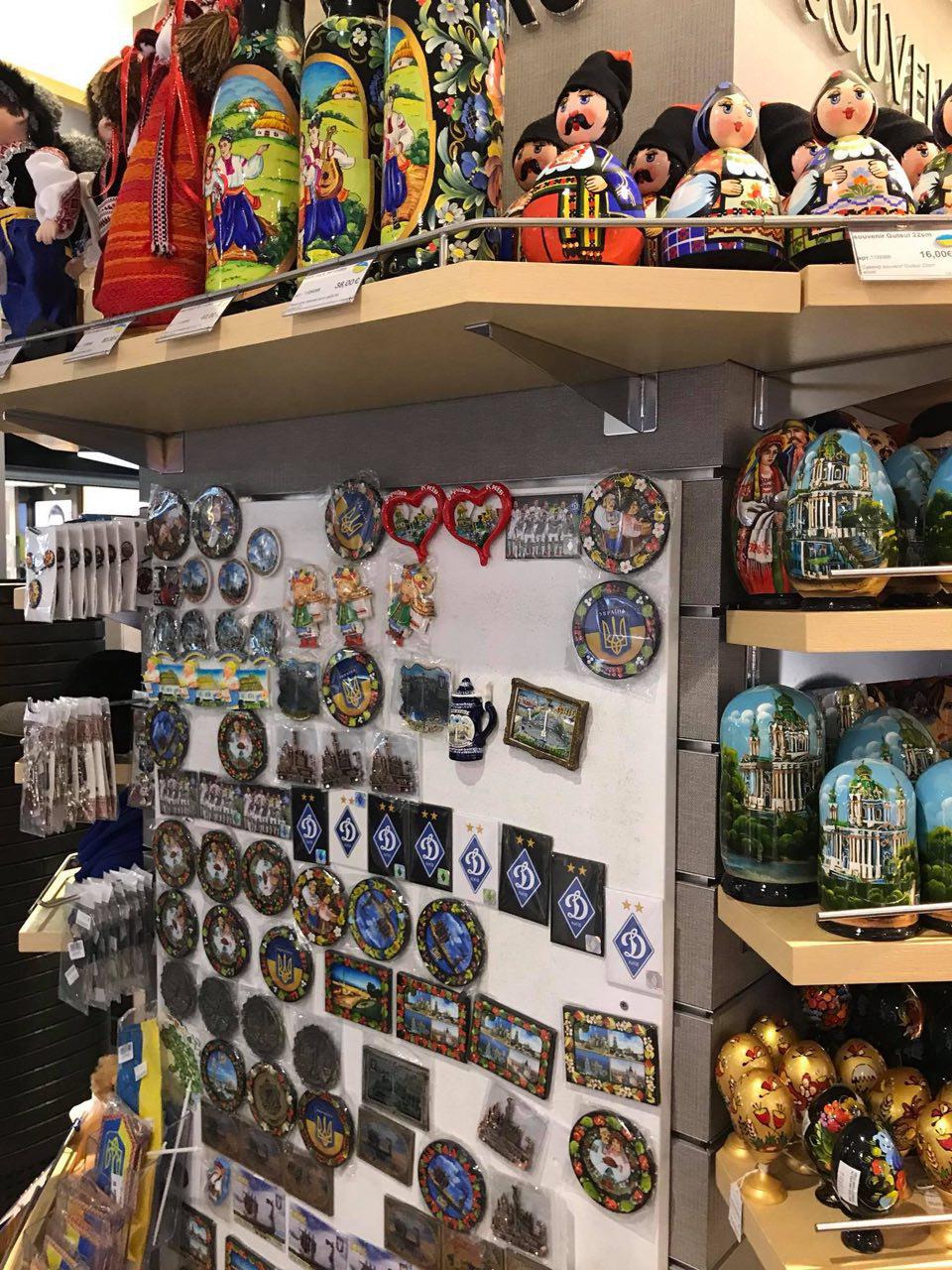 Об этом он заявил в своем блоге, приложив фото с сувенирами, которые расположены рядом с товарами с украинской символикой.