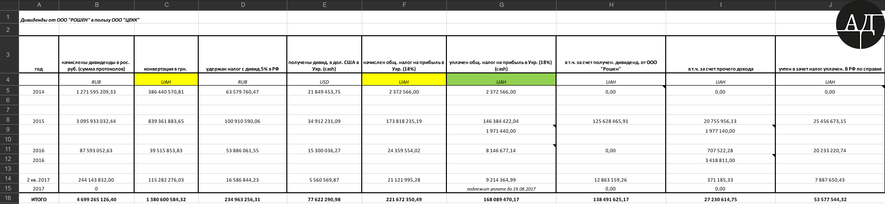 За 2 квартала 2017 чистая прибыль ООО «РОШЕН» в РФ — 115 282 276,03 грн», — пишет Дубинский.