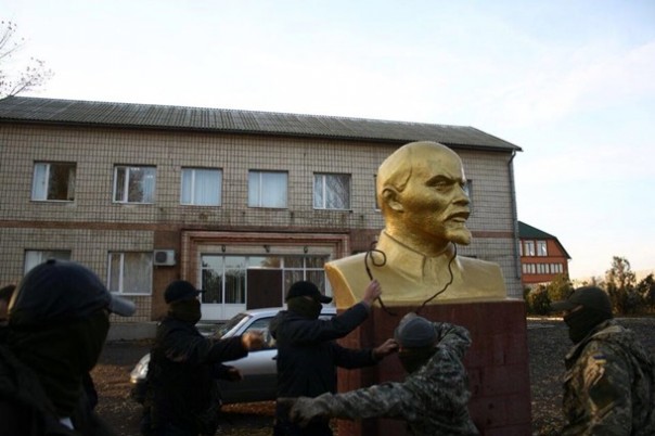 Украинствующие села Шабо Одесской области в рамках закона о декоммунизации демонтировали памятник Ленину. Об этом сообщается на странице общественной организации Свободные люди в соцсети Facebook.
