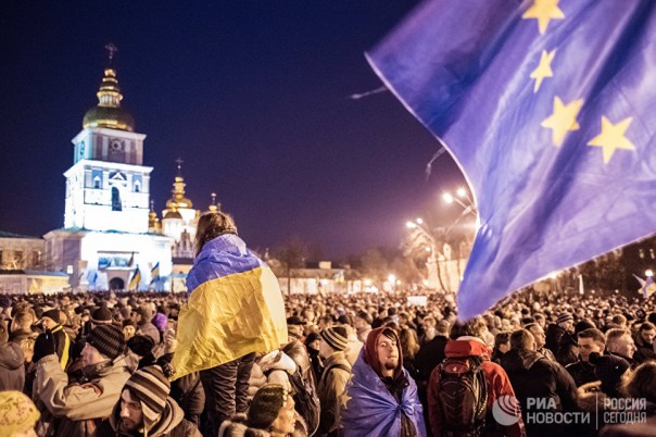 Участники акции в поддержку евроинтеграции Украины на Михайловской площади в Киеве