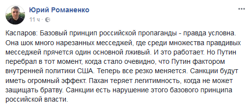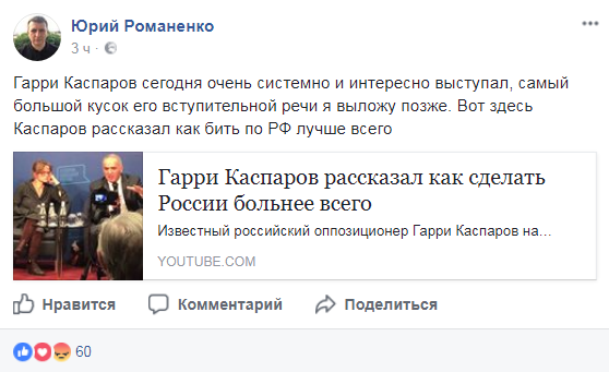 Представляете, какими надо быть упоротыми, чтобы всерьез слушать Каспарова? Это всё. Днище. Там можно в голову гвоздь вбить и человеку ничего не будет - это же кость!
