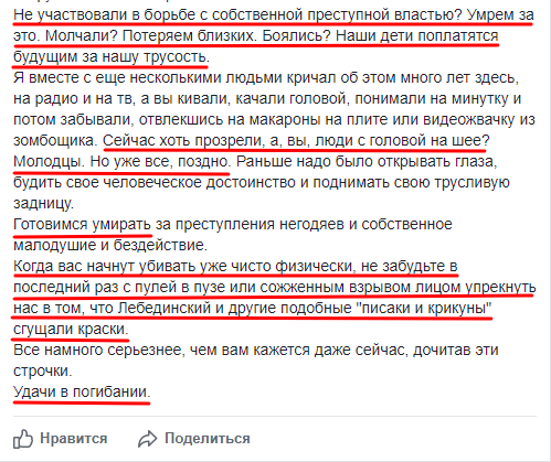 Это пишет майдаун и волонтер АТО, представляете как их там в последнее корёжит, когда они понимают, что собственными руками разрушили свою нормальную (а у кого-то и замечательную) жизнь: