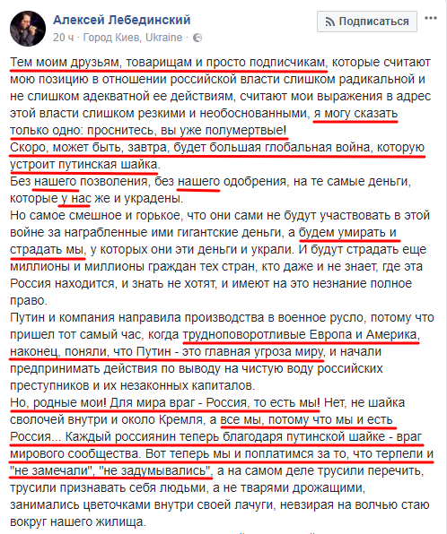Все россияне уже виноваты в том, что их будут убивать русофобы
