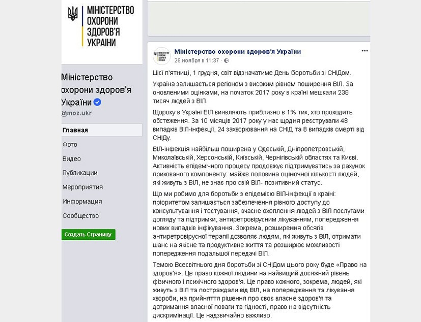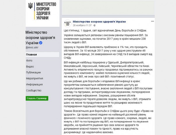 «Ежегодно среди обследованных на ВИЧ на Украине примерно у 1% лиц этот диагноз подтверждается. В течение десяти месяцев 2017 года в стране ежедневно регистрировали 48 случаев заболевания ВИЧ-инфекцией, 24 случая заболевания СПИДом и 8 случаев смерти от СПИДа», — говорится в сообщении ведомства.