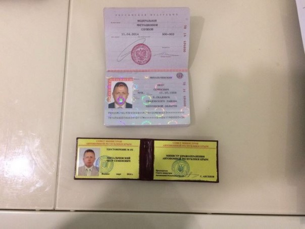 Оперативники спецслужбы изъяли паспорт гражданина РФ, служебное удостоверение за подписью главы Крыма Сергея Аксенова и другие документы, «подтверждающие его сотрудничество с оккупационными властями».