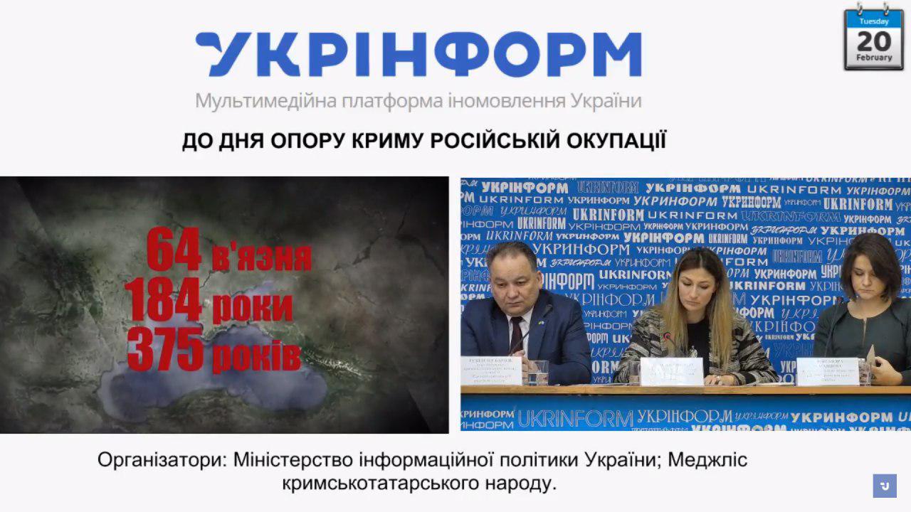 Сегодня, 20 февраля, в киевском пресс-центре Укринформ собирались «опорки» – кучка злобных попугаев, требующих от Порошенко признания официальной даты «начала крымского сопротивления российской оккупации Крыма». Помимо меджлисовцев Джапаровой и Бариева, уже давно примелькавшихся на подобных мероприятиях и вышедших в тираж, было заявлено присутствие «дорогого гостя» – «страстотерпца» Чийгоза, а также двух малоизвестных «экспертов» из опереточных грантоедских лавочек: Александры Романцовой, замглавы Центра гражданских свобод, и Артура Харитонова, возглавляющего некую Либерально-демократическую лигу Украины.