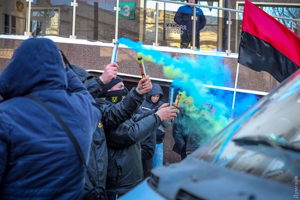 Укроподонки Одессы облили красной краской консульство России и требовали освободить "оккупированные территории Украины".