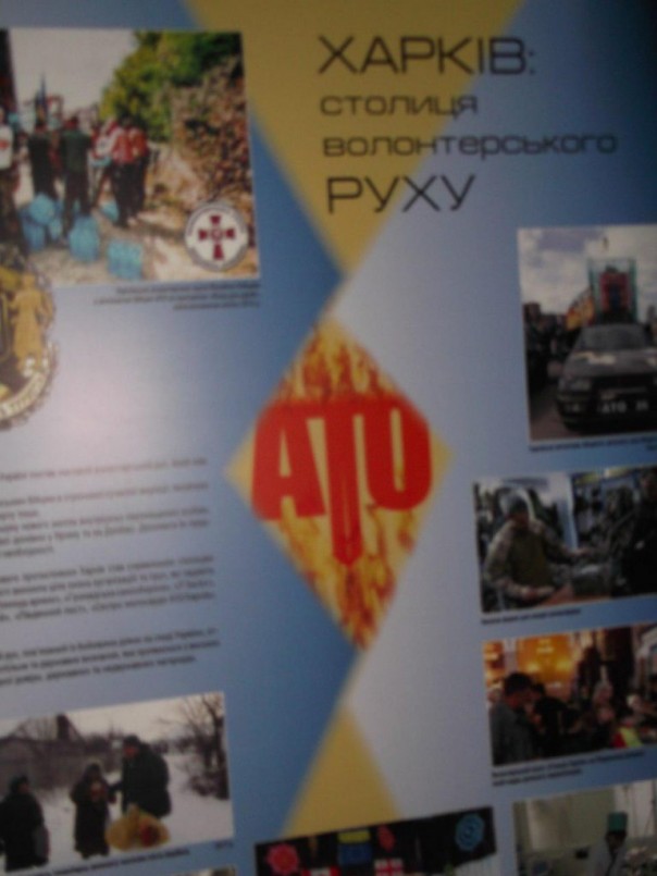 «На выставке представлены следующие темы: агрессия России в Крыму и на востоке Украины, добровольцы на защите Родины, Харьков – столица волонтерского движения, Иловайская трагедия, бои за Дебальцево, битвы за Донецкий и Луганский аэропорты, 92-я отдельная механизированная бригада, переселенцы с востока Украины и Крыма, военнослужащие — уроженцы Харьковщины, которые погибли во время проведения АТО (по состоянию на 30 октября 2017 г.), верны присяге до последнего вздоха, модернизация Вооруженных сил Украины, память о героях АТО», — так анонсировал ее сайт облгосадминистрации.
