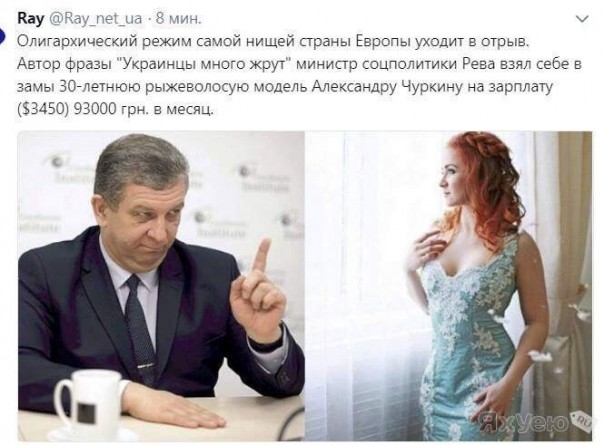 Напомним, Андрей Рева это тот самый министр который лазил по мусоркам в поисках доказательств, что украинцы слишком много едят, а также выбрасывают много отходов и многих других одиозных выходок и инициатив.