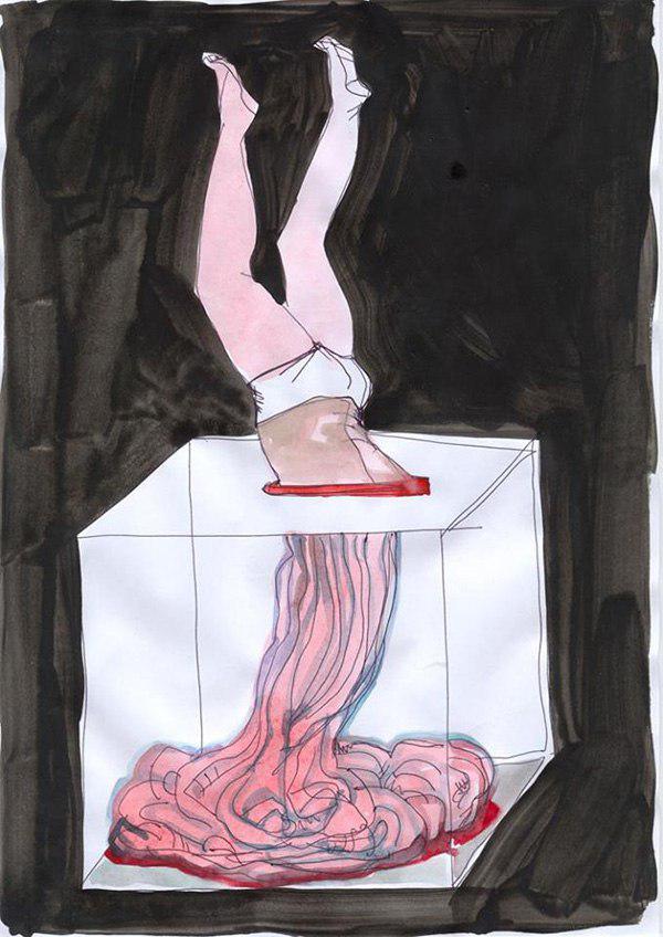 Право, не будь вся эта мазня, простите моё ретроградство, просто клинически бездарна, я мог бы её принять за иллюстрации к блистательному роману Георгия Зотова «Печать Луны», где в роли Джека Потрошителя выступает… женщина. Но нет, талантливый и саркастичный московский писатель точно забраковал бы эту беспомощно-претенциозную халтуру. Зато специалисты по судебной психиатрии и творчеству душевнобольных — приняли бы её «на ура». И поместили бы на соответствующих стендах своих музеев как яркий пример прогрессирующей тяжелой некрофильской патологии.