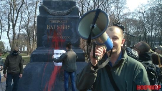 А пока наученные Патриляком нацисты из С14 у облитого краской памятника генералу Ватутину кричат: «Бухенвальд поменяли на Колыму».