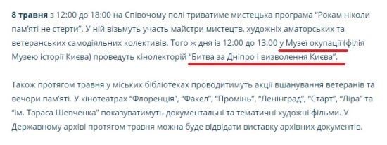 А вот пример шизофрении, когда в Киеве в созданном современными оуновцами «Музее оккупации» проходит кинолекторий «Битва за Днепр и освобождение Киева».