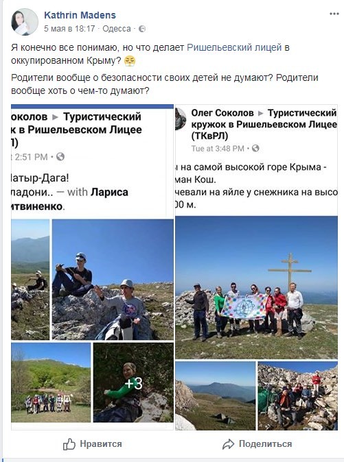 "Я, конечно, все понимаю. Но что делает Ришельевский лицей в оккупированном Крыму? Родители вообще о безопасности своих детей не думают? Они вообще хоть о чем-то думают?" — написала Мандес."