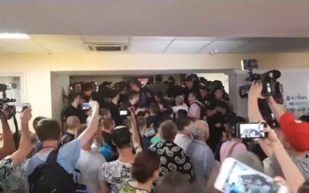 Толпа митингующих против повышения платы пыталась прорваться сквозь оцепление правоохранителей и попасть в сессионный зал. Соответствующее видео опубликовал участник протеста Александр Аронец на своей странице в Facebook.